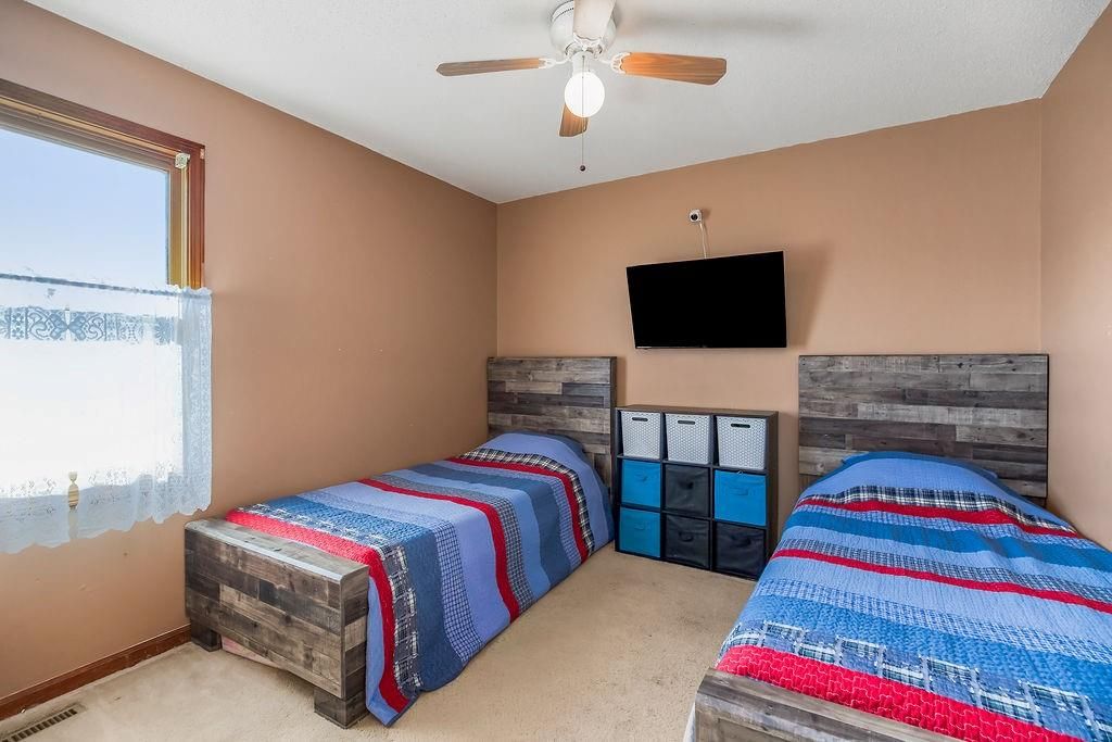 Welcome to this cozy home featuring brand-new appliances, a new furnace, and an upgraded AC unit all completed this year. Inside, you'll find hardwood floors, vaulted ceilings, and a spacious kitchen with newly added solid-surface countertops, stainless steel appliances, and a deep sink. All three bedrooms are upstairs with carpet throughout, and two offer walk-in closets. The primary bathroom has a shower, while the hall bath includes a shower and tub combo. The basement provides a concrete-floored family and laundry area, plus a sub-basement for extra storage. Step outside to enjoy the expanded covered deck overlooking the fenced yard. The front of the home features a wooden deck with railing and mature trees for added appeal. Conveniently located near major highways, shopping, and restaurants. No HOA!