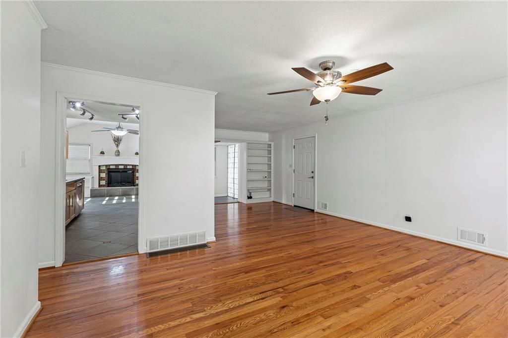 Spacious and well-maintained ranch offering multiple living areas, sunroom, in-ground pool, and a large fenced backyard! Home features hardwood floors, built-in shelving, and an open living/dining layout. The kitchen opens to a vaulted hearth room with tile flooring, modern lighting, and a stylish fireplace. Sliding doors lead to a bright sunroom with large windows overlooking the backyard. Bedrooms have great natural light, and the finished basement provides additional space for recreation, office, or storage. The backyard is ideal for entertaining with a large patio, pergola, storage shed, and an in-ground pool (currently covered). Double driveway and attached two-car garage. Located in a quiet, established neighborhood with easy access to shopping, schools, and major highways. Move-in ready and full of potential!