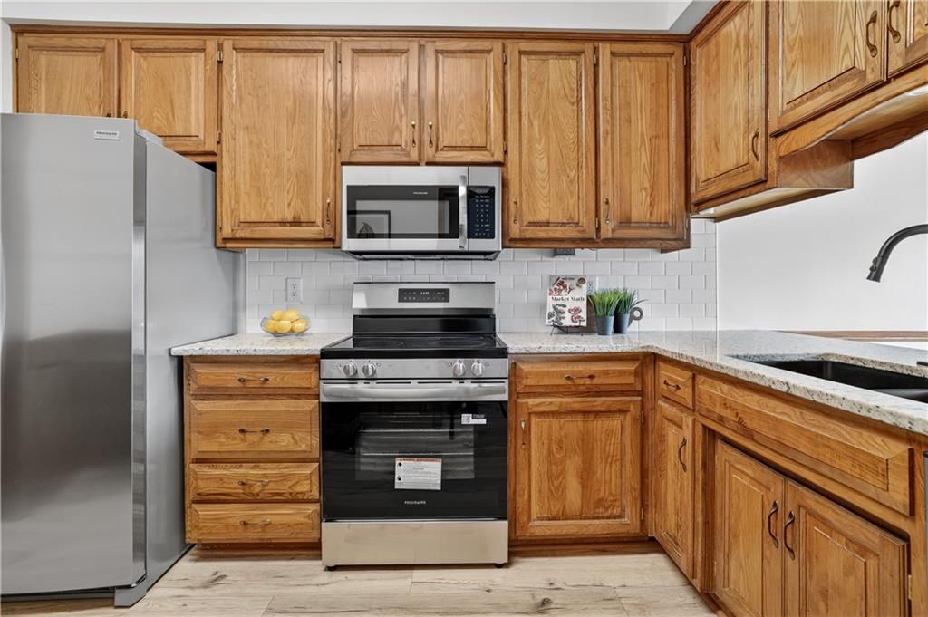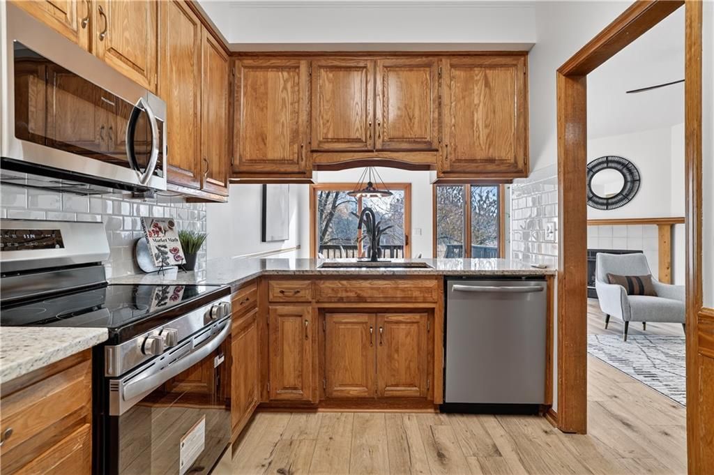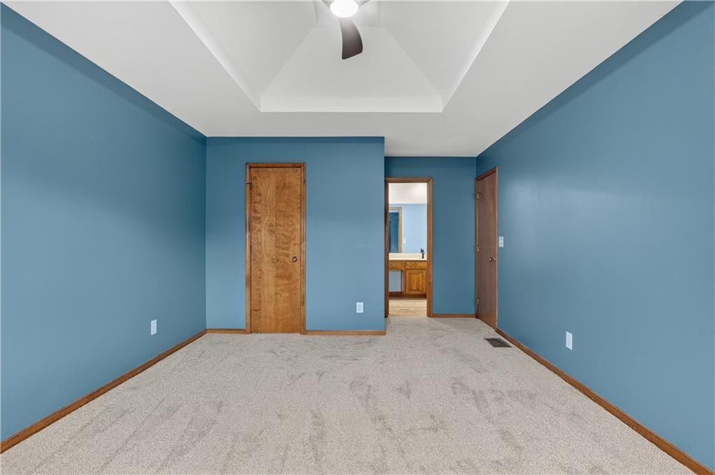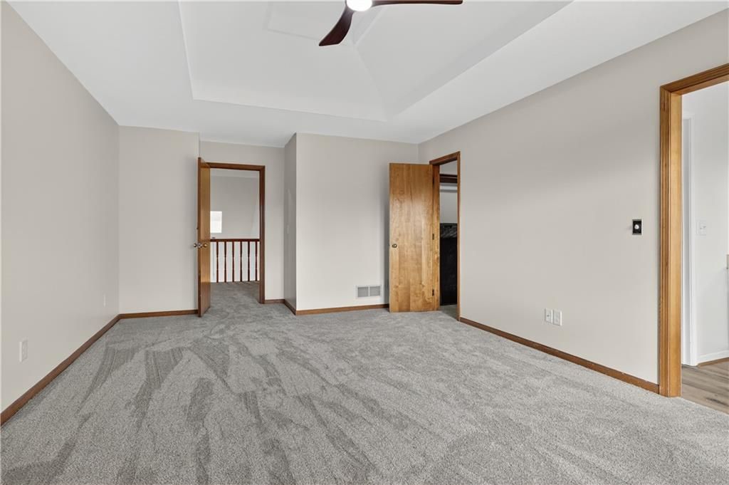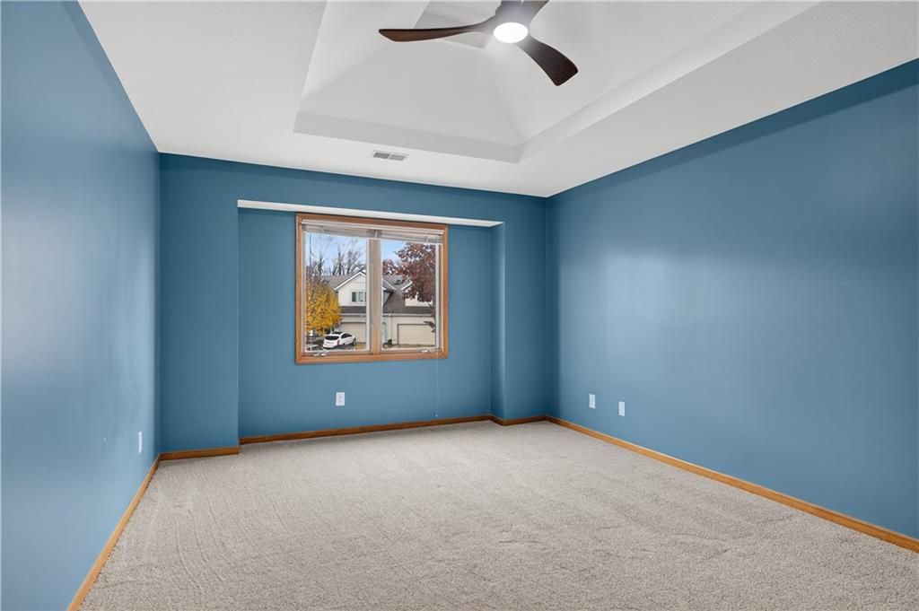Enjoy maintenance-free lake views with your morning coffee from the updated back porch of this spacious, beautifully refreshed townhome! This light-filled home has just been extensively updated (November 2025) with brand-new LVP flooring on the main level and bathrooms, new carpet on stairs and 2nd level, and fresh interior paint throughout. Electrical and plumbing systems have been repaired and updated as needed, offering peace of mind for the next owner. The kitchen shines with new countertops, backsplash, new appliances, new flooring and updated light fixtures. Bathrooms feature new toilets and flooring - everything is fresh and move-in ready. Upstairs, you'll find two oversized primary suites with private bathrooms - one with a whirlpool tub and separate shower - each with generous walk-in closets. A cozy loft with a skylight overlooks the entryway, adding to the home's bright, open feel. The unfinished basement features tall ceilings and an egress window, giving you the option to easily finish add 500+ sq ft of finished living space and a conforming third bedroom. Tucked away on a quiet cul-de-sac backing to greenspace and a peaceful lake near the thriving Tiffany Springs area, this home offers mature trees, colorful landscaping, and a truly serene setting within the top-rated Park Hill School District.